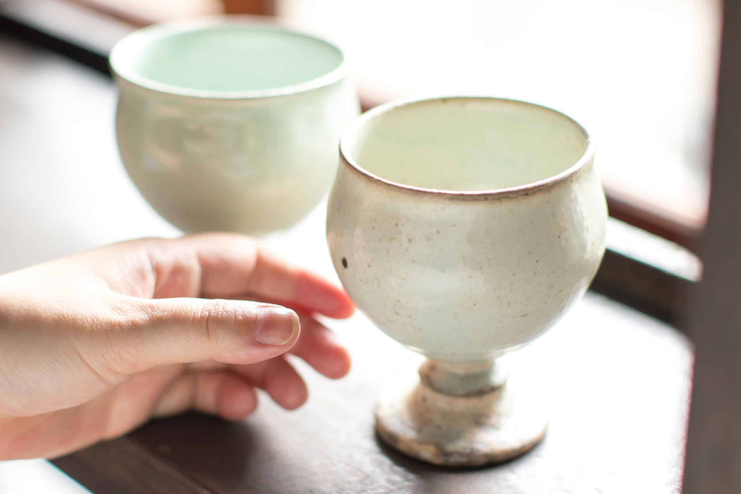 それから時を経て 2019 年の夏。私達の育てたマスカット・オブ・アレキサンドリアの木々の灰。そこから生まれたうつわがついにお披露目される機会がやってきました。冒頭でも名前がでた「果実の灰でうつわをつくる」です。この展覧会にあわせて、私達が初めて手掛けたオリジナルワイン「M」も販売。普段、ワインを呑まない方が「M」を手にして帰途につく。自宅で呑んで美味しかったと感想をくれる。また油亀にワインを求めに来てくれる。そのことを柏戸さんから聞いたときの喜びといったら!また、私達が育てたマスカット・オブ・アレキサンドリアの灰から生まれたうつわを、初めて目のあたりにしたときの感動はひとしお。何より、油亀を訪れる人たちの楽しそうな眼差しは今でも胸にやきついてはなれません。