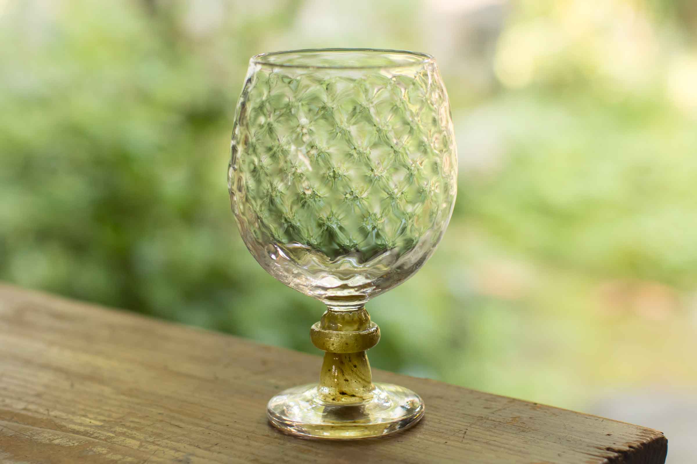 2020 年の夏には、再び「M」を油亀で紹介してもらいました。この時、柏戸さんは灰をガラス作家の白神典大さんに届けて油亀限定のワイングラスも制作。マスカット・オブ・アレキサンドリアから生まれたワインと、その木々の灰から生まれたワイングラスという組み合わせは、大変な注目を浴びました。
