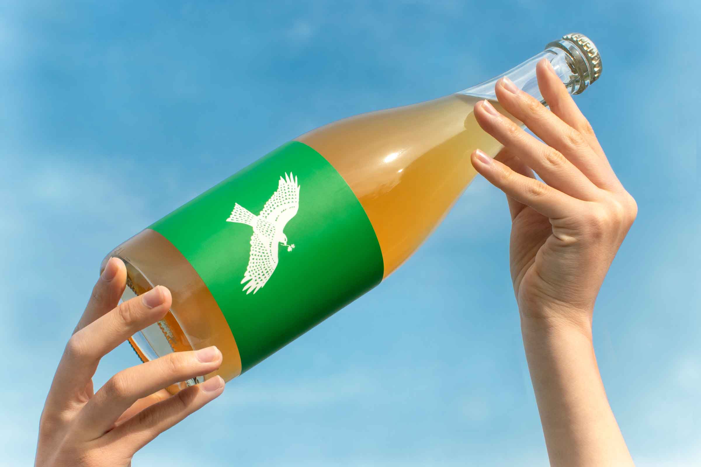 風の吹く様を意味する漢字を名前に採用したこのワイン。文字の意味のまま、春から初夏に吹き抜ける、心地よい風を感じる爽やかな仕上がりとなりました。ラベルデザインは、アートスペース油亀さんに依頼。風の気流のなかで翼を広げ、空を駆けぬけていく鳥は、ぶどうの枝をくわえています。様々な場所や地域。ひいては空を超えて海を超えて、世界各国、異国の地へ。岡山県で育まれたぶどうから生まれたワイン「颯」が、この鳥のようにどこまでも羽ばたいていく。そんな願いと未来への展望が込められています。